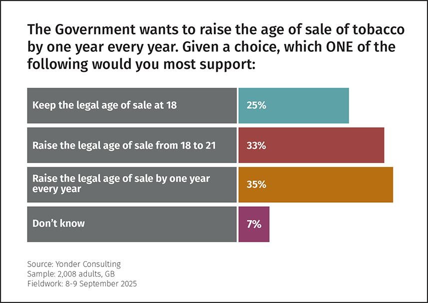 But, first, a couple of things are worth pointing out. One, the idea peddled by ASH, based on a poll conducted by YouGov, that a significant majority (around 70%) support a generational ban on the sale of tobacco, is only true if you adopt a two-dimensional, black and white, view of the world.
