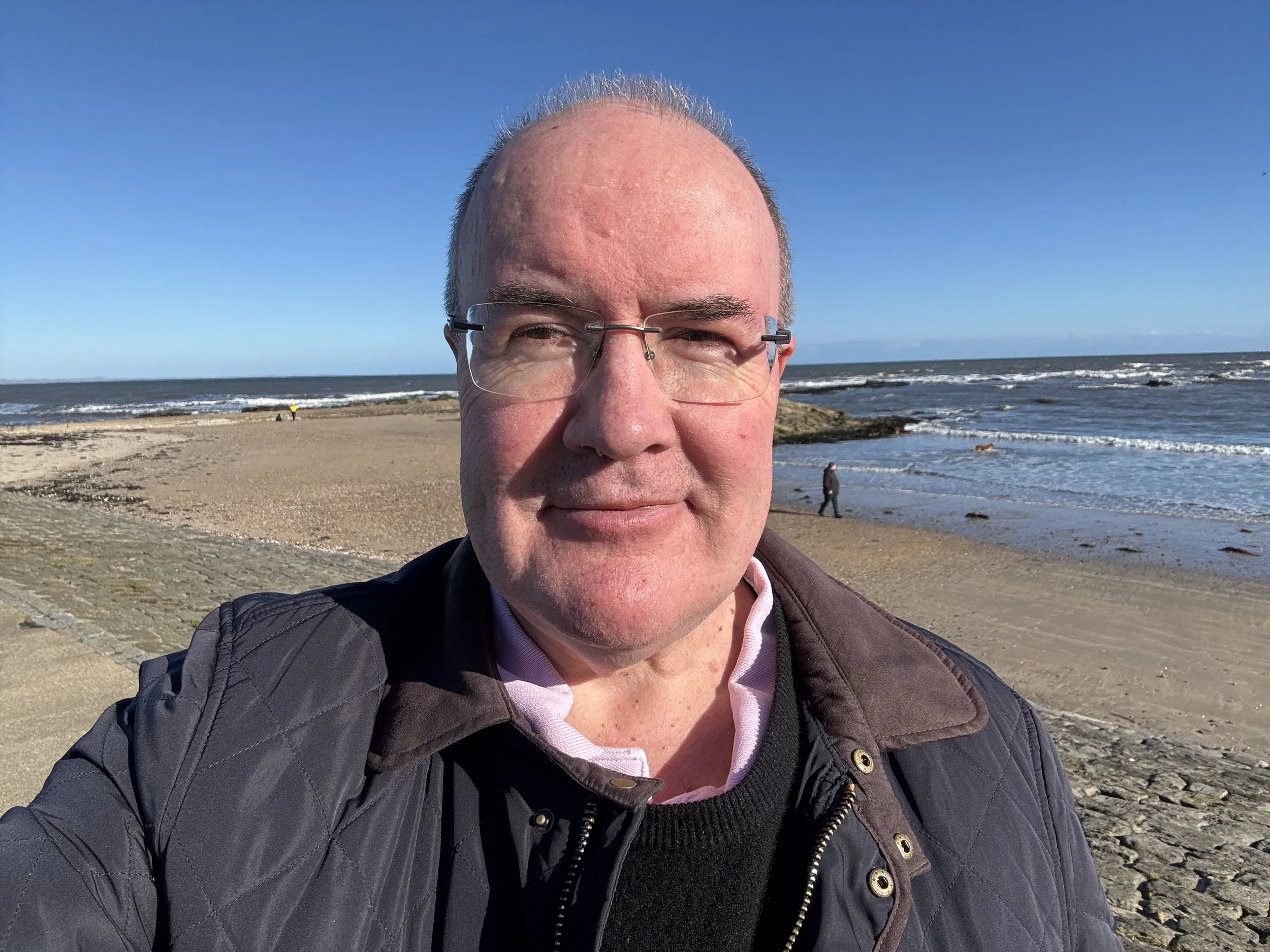Below: The West Sands at St Andrews this morning. Note the relief on my face.
