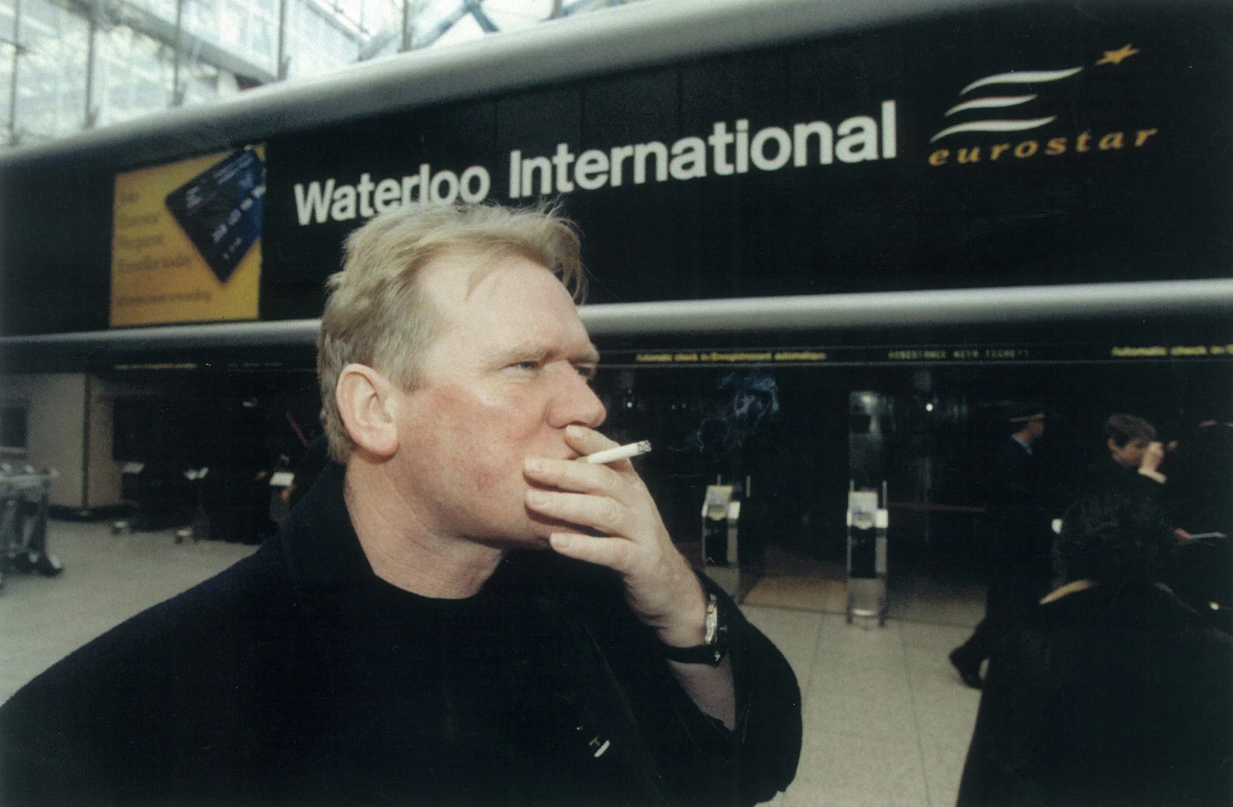 Bob Shields, chief feature writer, Daily Record, at the original Eurostar terminal at Waterloo on No Smoking Day, March 1999.